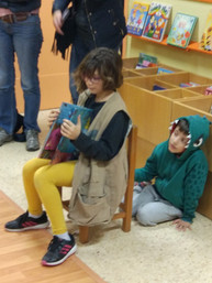 La biblioteca se'ns ha quedat petita aquest dimarts per acollir tota la gent que volia veure la Jana, alumna de 3r, explicar la història 'Quan els dracs somien'. Tanta expectació estava ben justificada. La Jana ens ha meravellat amb aquesta història d'un petit drac que no pot dormir i acaba descobrint un món meravellós amb les fades. I a sobre ens ho ha teatralitzat amb l'ajut de l'Unai, de 1r.